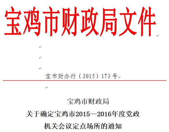 名  称: •DB真人游戏平台关于确定宝鸡市2015—2016年度党政机关会议定点场所的通知