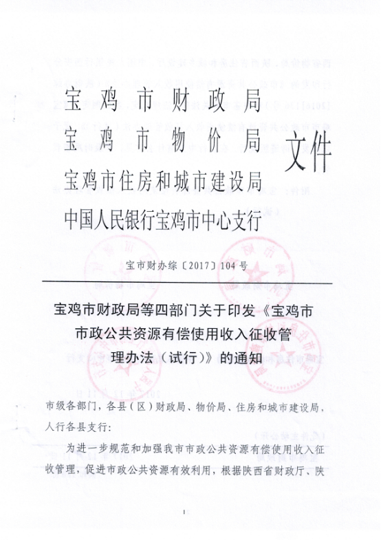 宝鸡市市政公共资源有偿使用收入征收管理办法