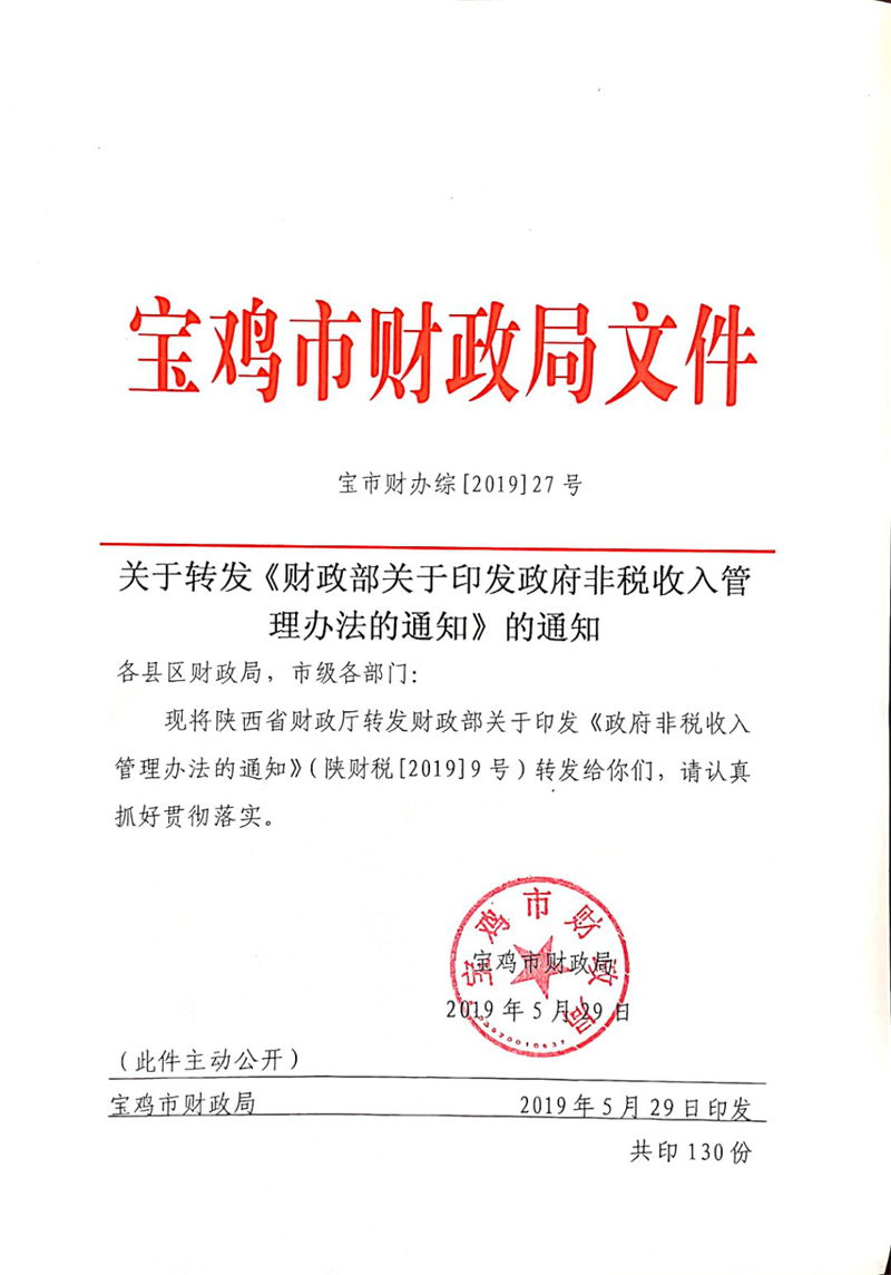 DB真人平台关于转发《财政部关于印发政府非税收入管理办法的通知》的通知