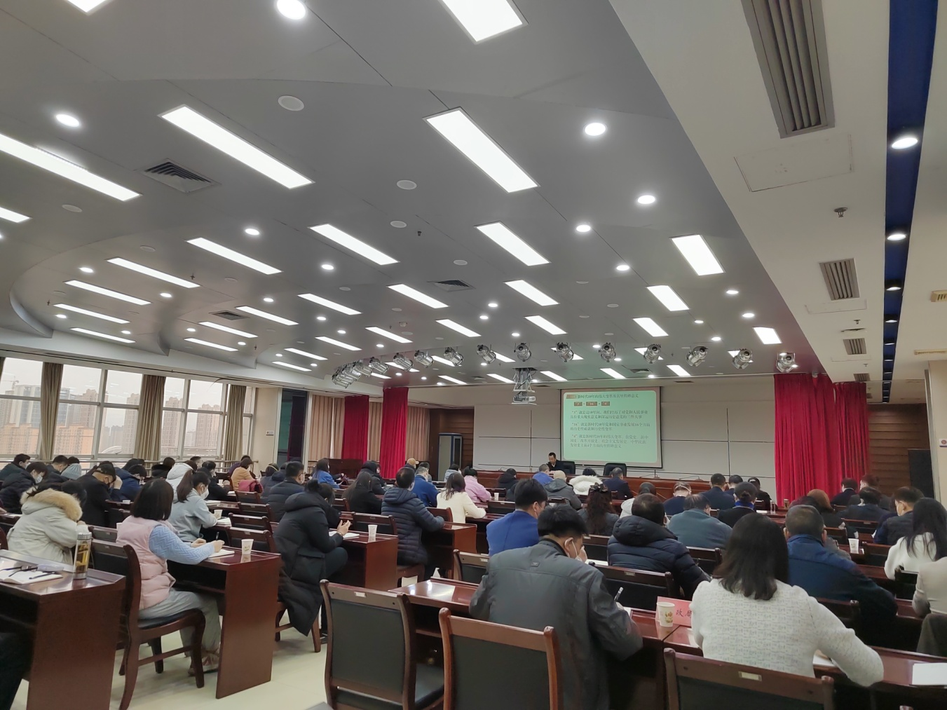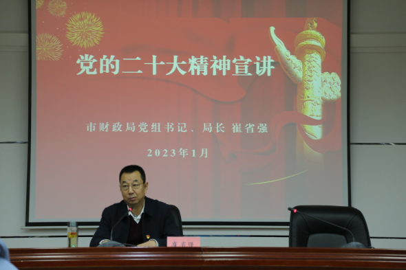 1月16日,市财政局举行党的二十大精神宣讲报告会,市委宣讲团成员、市财政局党组书记、局长崔省强作宣讲报告,市财政局、市审计局、市统计局共110余名党员干部参加。