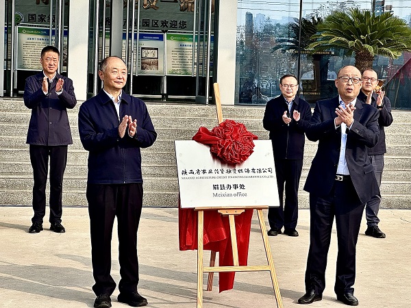 2024年11月7日,陕西省农业信贷融资担保有限公司眉县办事处揭牌活动在眉县猕猴桃产业园区隆重举行。省公司党委委员、监事长纪光伟同志,DB真人游戏平台党组成员、副局长冯涛同志,眉县政协主席曲永宏同志,眉县县委副书记齐永宏同志,眉县人大常委会副主任王贵生同志,眉县人民政府副县长马贝贝同志出席活动。纪光伟同志与曲永宏同志共同为眉县办事处揭牌,猕猴桃产业园区党工委书记、管委会主任汪午强主持此次揭牌活动。眉县各镇街、县财政局、县发改局、县农业农村局,邮储银行、农商银行、中国银行、农业银行、工商银行、建设银行、长安银行、泰隆银行负责人以及部分拟授信企业代表参加活动。