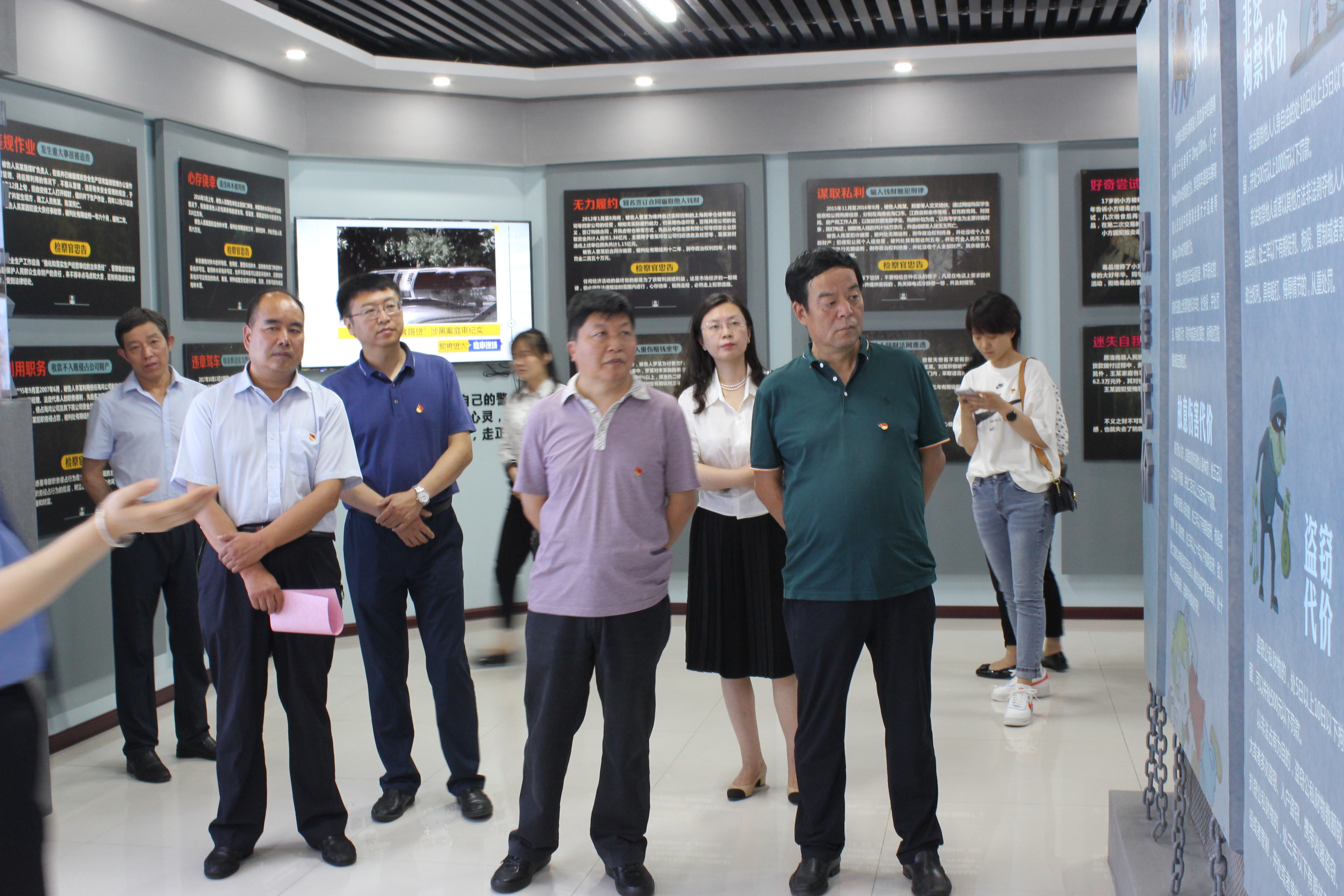 为进一步增强我中心党员干部依法行政能力,廉洁自律意识,结合全市开展的领导干部违规插手干预工程建设和矿产开发专项整治清查及综改重点业务工作,6月29日中心党支部组织全体党员到岐山县检察院法制宣教中心、检察文化中心,通过观看《中华法文明探源》、《清澈之眼》等法治宣传和警示教育短片,亲手敲响警世钟,重温入党誓词,使大家思想上受到了一次深刻洗礼,大家纷纷表示要坚持锤炼忠诚干净担当的政治品格,自律自省,警钟长鸣,用实际行动筑牢不敢腐、不能腐、不想腐的廉洁底线,把为农服务的实事办好办干净。