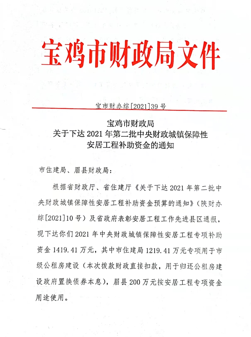 DB真人游戏平台关于下达2021年第二批中央财政城镇保障性安居工程补助资金的通知