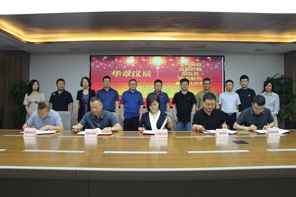 签约仪式上,公司董事长强军民与金发集团执行总裁贺兰签署了《江西华章汉辰融资担保集团股份有限公司增资扩股协议》,与江西华章汉辰融资担保集团、陕西财控资产管理公司、陕西渭滨发展投资公司、宝鸡高新投资控股公司等签署了《关于成立陕西财控融资担保有限公司合作协议》。