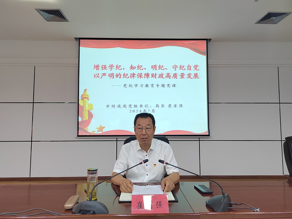 为推动党纪学习教育走深走实,7月11日,市财政局召开警示教育大会,局党组书记、局长崔省强同志出席会议并讲党纪学习教育专题党课。