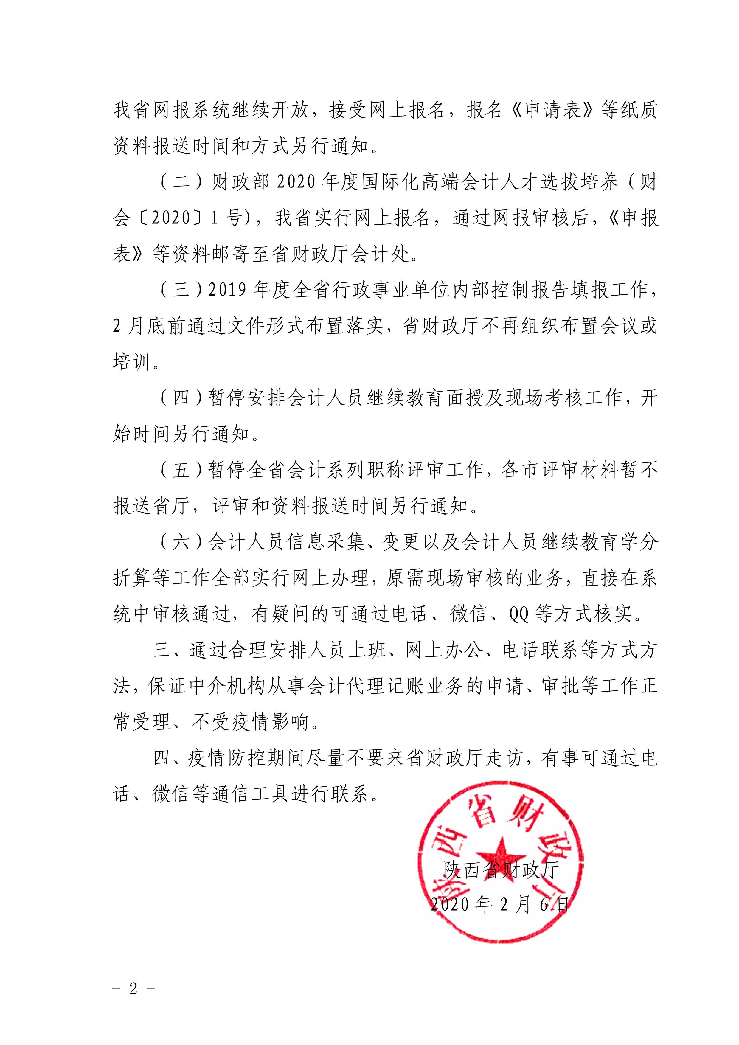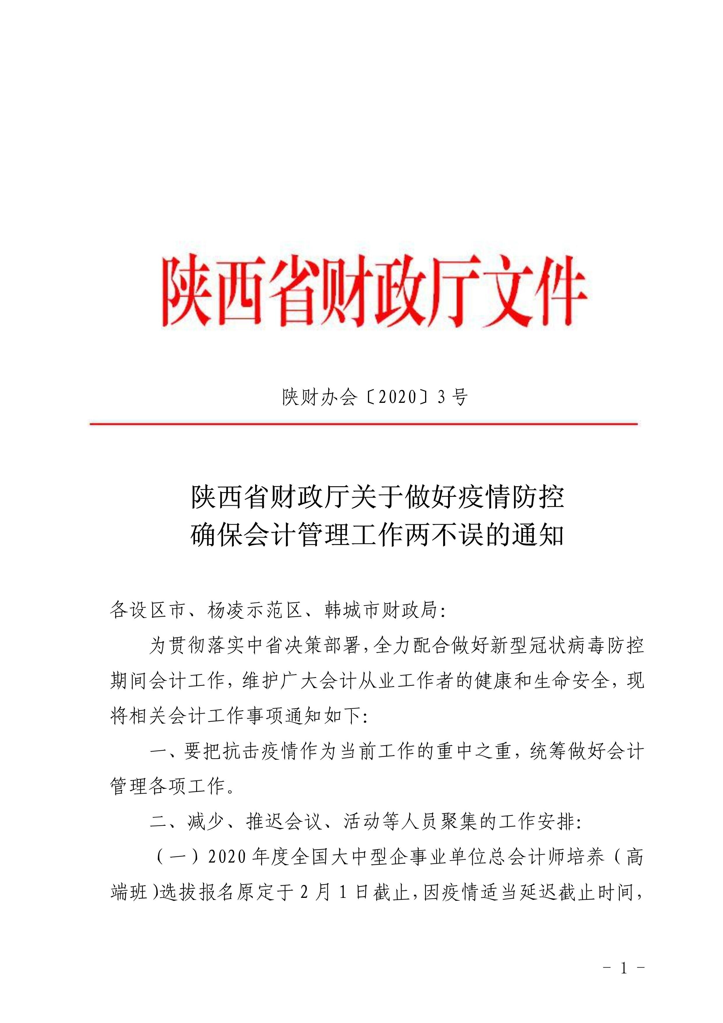 陕西省财政厅关于做好疫情防控确保会计管理工作两不误的通知