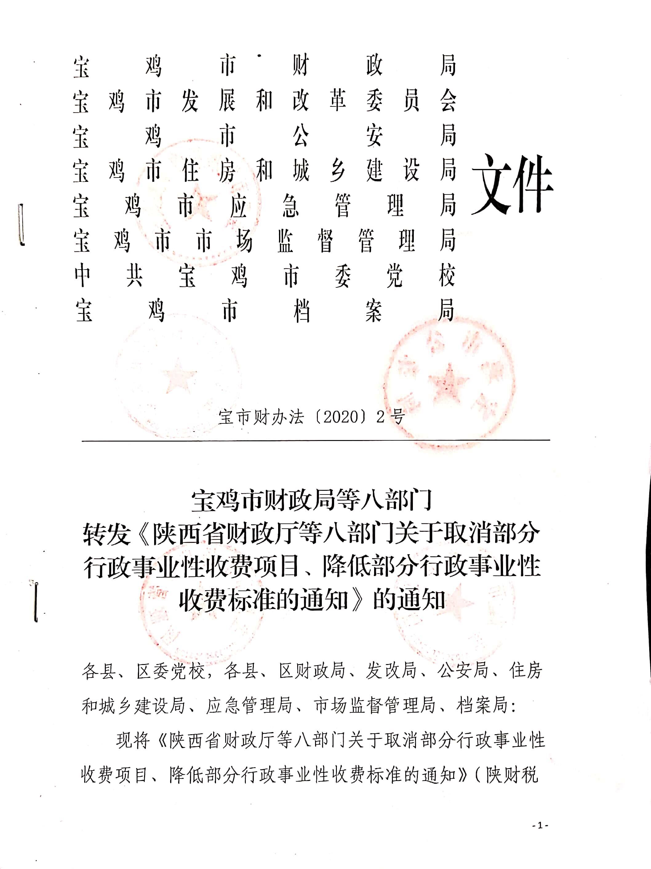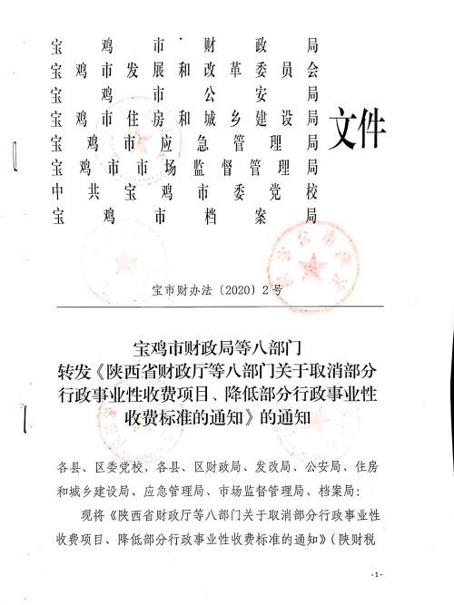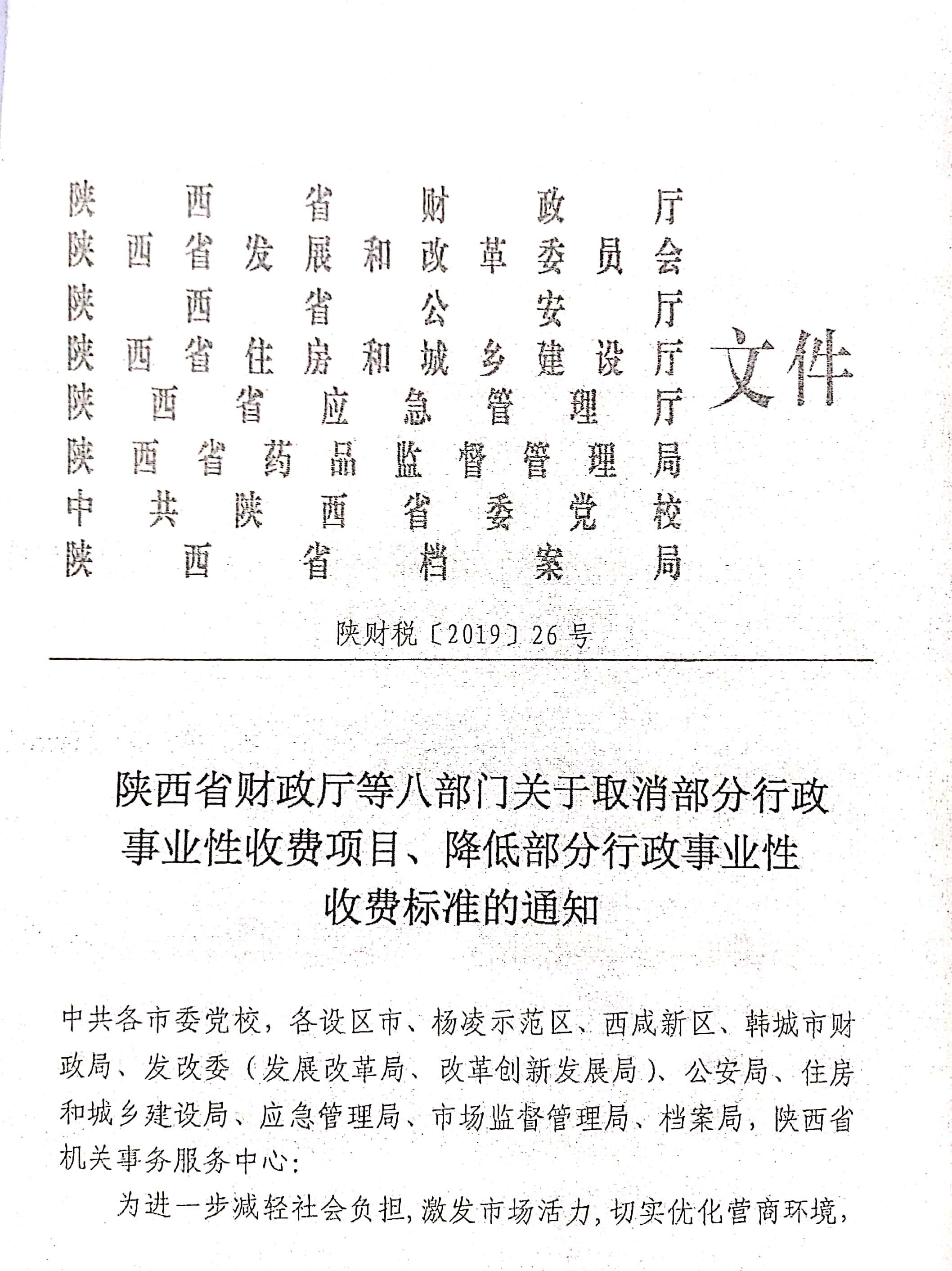 DB真人游戏平台等八部门转发《陕西省财政厅等八部门关于取消行政事业性收费项目、降低部分行政事业性收费标准的通知》的通知